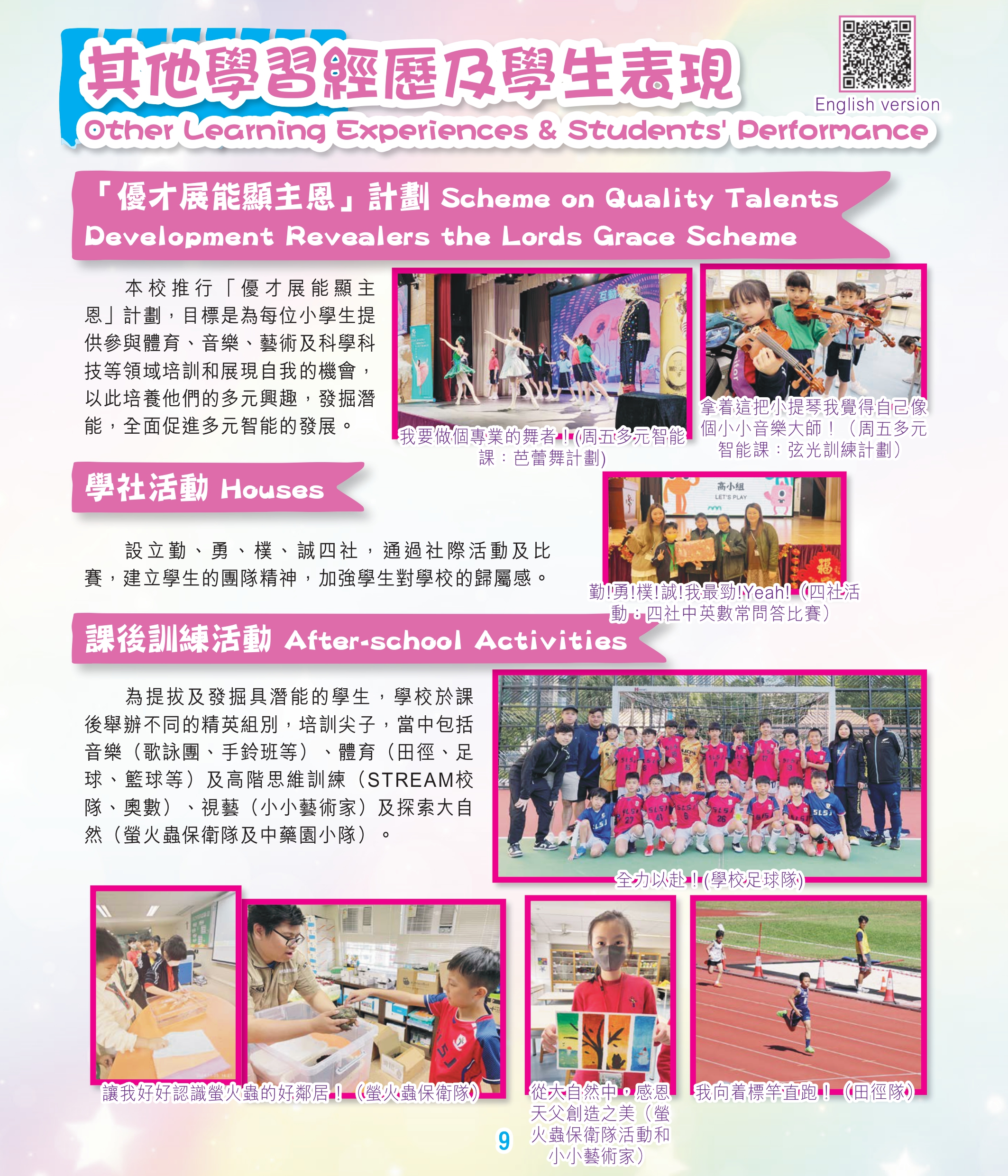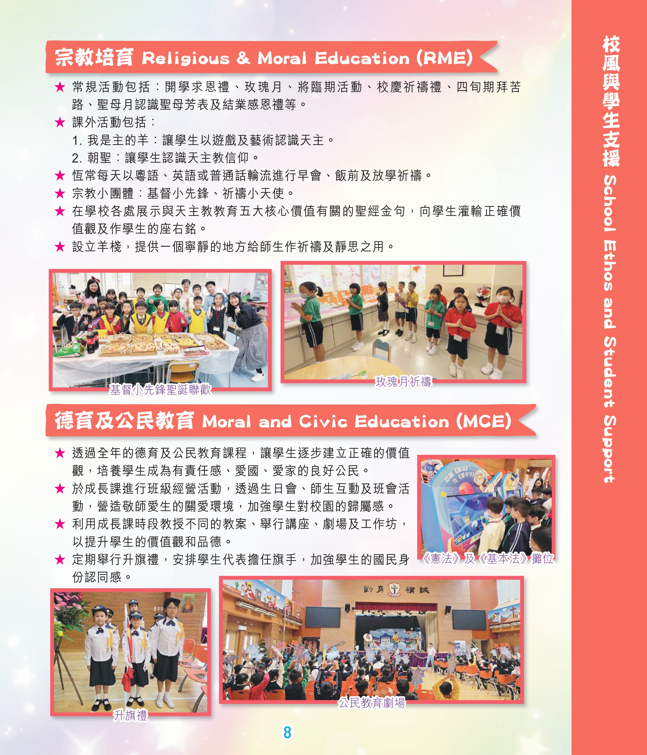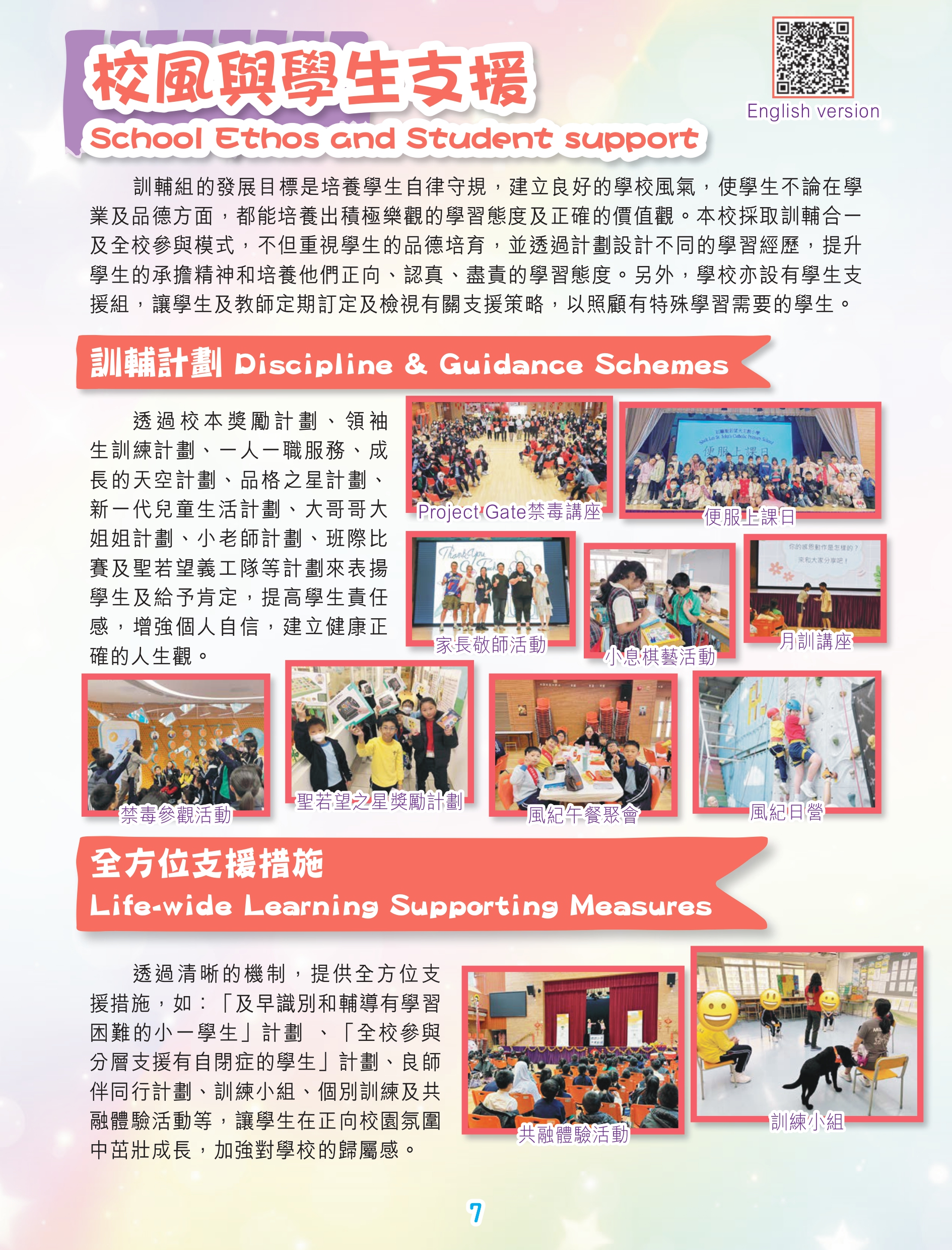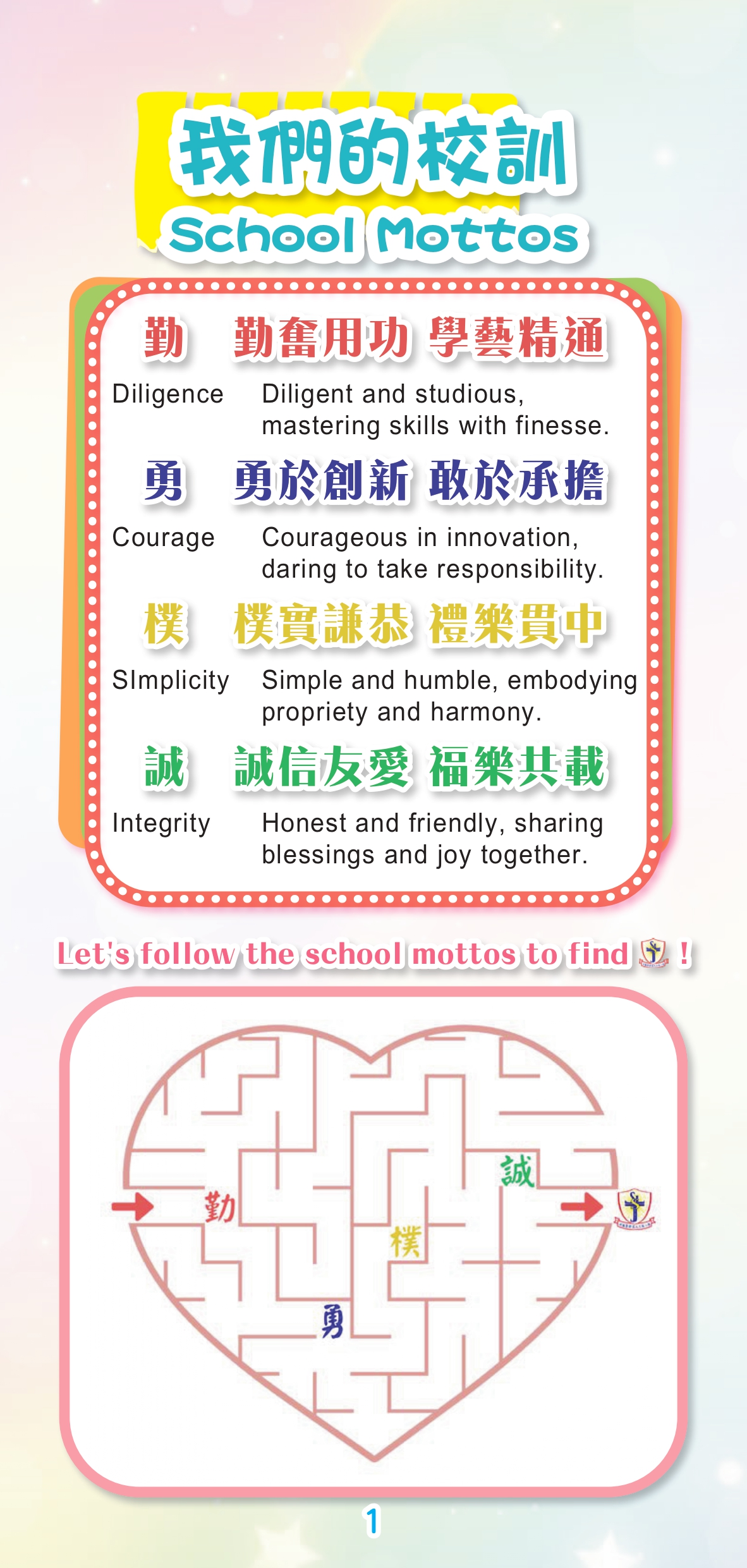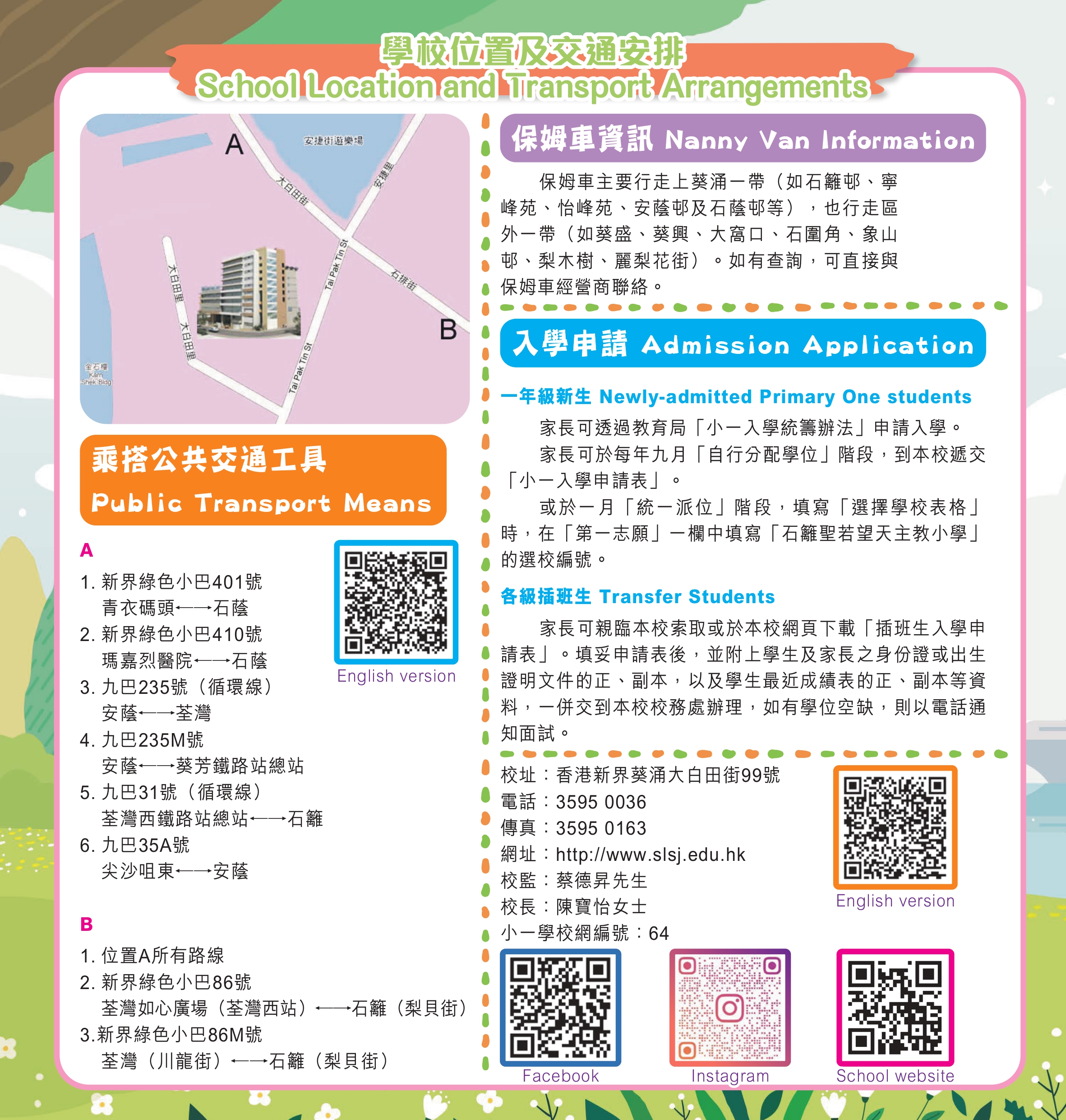Shek Lei St. John’s Catholic Primary School is a government-aided whole day co-ed school, sponsored by the Catholic Diocese of Hong Kong. It was founded in 1970 and was formerly named as Shek Lei Catholic Primary School (Afternoon Session). Since November 2009, it has been moved to the campus at Tai Pak Tin Street, maintaining all round education for children of the same district. The School adheres to the 5 core values of Catholic Education “Life, Truth, Love, Justice and Family”, carrying forward the spirit of Christ and taking an example of St. John’s the Apostle “Love to Love, Love One Another”, in order to provide a loving and caring campus for children to learn and grow healthily. With the school motto "Diligence, Courage, Simplicity and Sincerity " set as a pillar, it is a place to shape students to be good persons in glorifying the Lord and achieving the ultimate goal of lifelong learning so that students can make contributions to their family, society and to the nation in the future. |