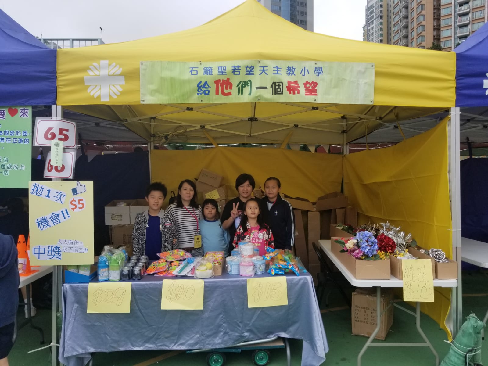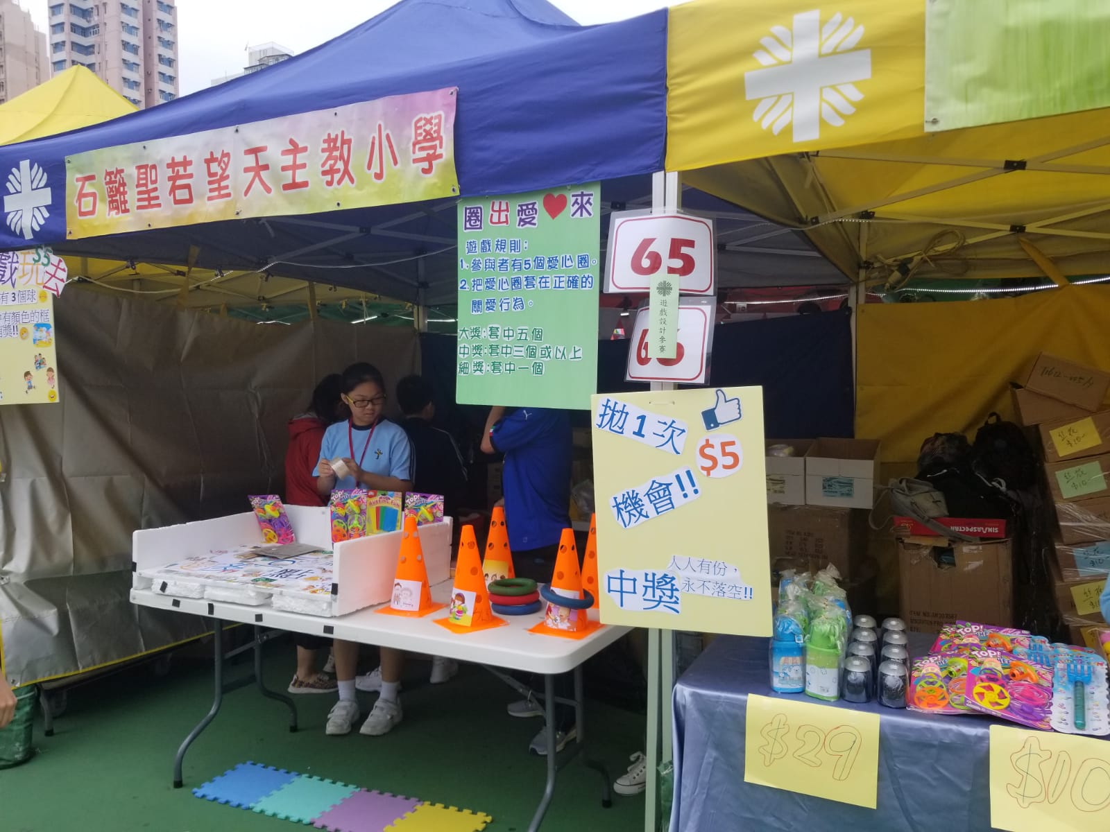 明愛賣物會於11月18日假沙咀道遊樂場舉行,老師、學生和家長均積極參與是次善舉。無論是攤位遊戲抑或是售貨,他們均十分落力和投入。