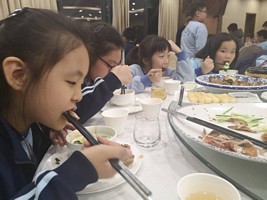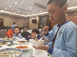 經過大半天的舟車勞頓和參觀,同學們的肚子餓得咕咕作響!一邊享用美味的晚餐,一邊欣賞精彩的變臉表演,令人回味無窮!