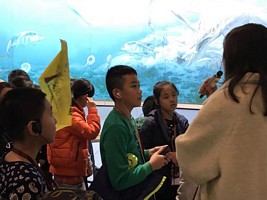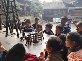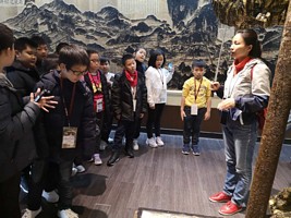 在自貢市鹽業歷史博物館內,孩子們用心地聽導遊講述這座建築的歷史和房屋上的雕刻藝術,同時進入展廳,孩子們了解並學習到了中國的井鹽發展歷史。