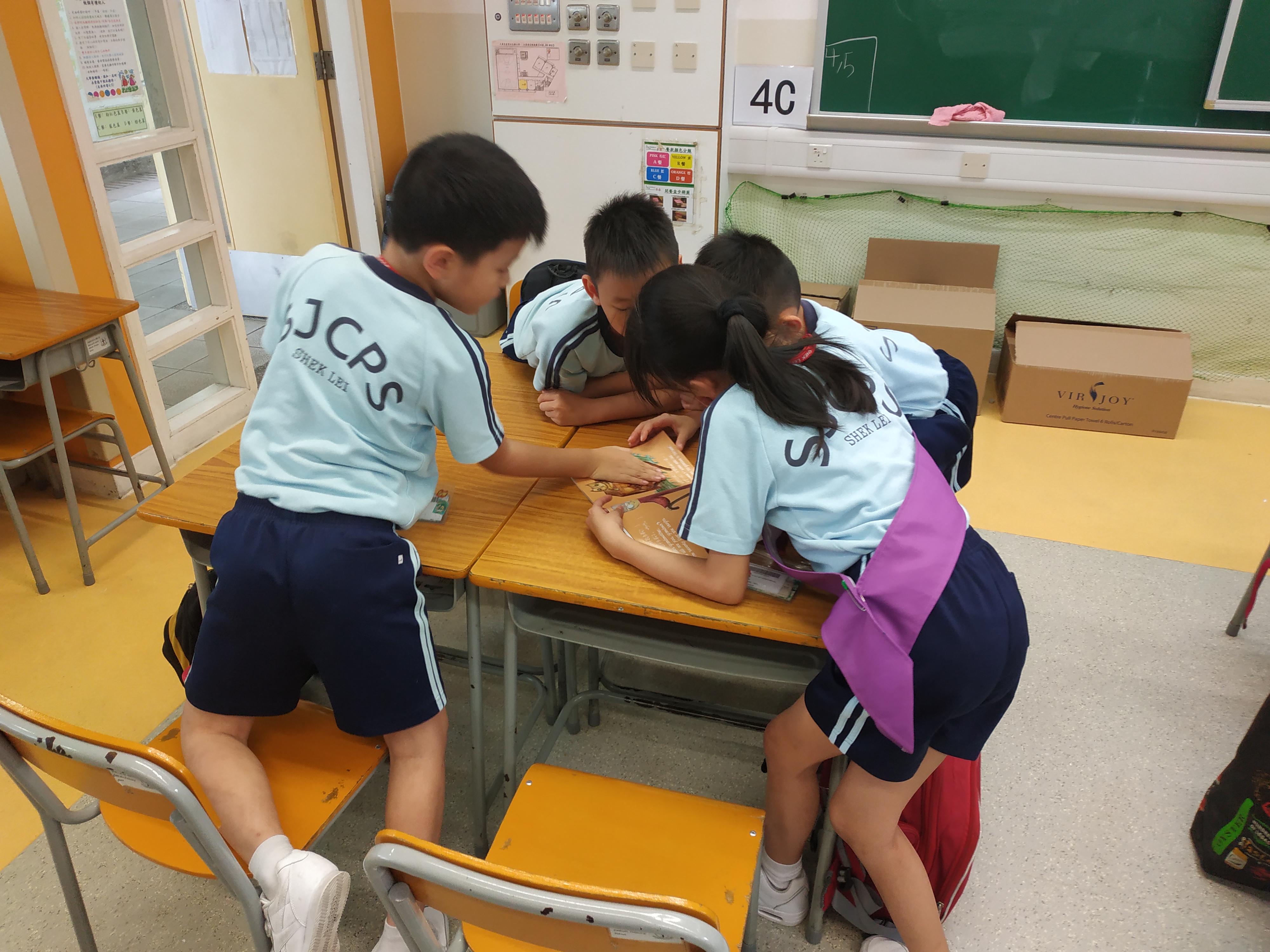 小四今年CIDA的主題為動物權益,為使學生反思肉食工業與農場動物的福祉,學校特別邀請繪本《小豬幾多歲?》作者吳韻菁女士親臨學校舉行共讀工作坊。《小豬幾多歲?》是一本有關現代集約式農場動物的故事,帶領學生從新感受動物的情感,從而帶出動物權益的訊息。透過故事共讀及體驗遊戲,學生認識到集約式農場飼養的豬隻感受到的痛楚,從而反思生活中如何關注動物權益,為下學期推廣動物權益的活動作好準備。
