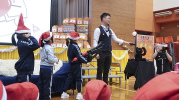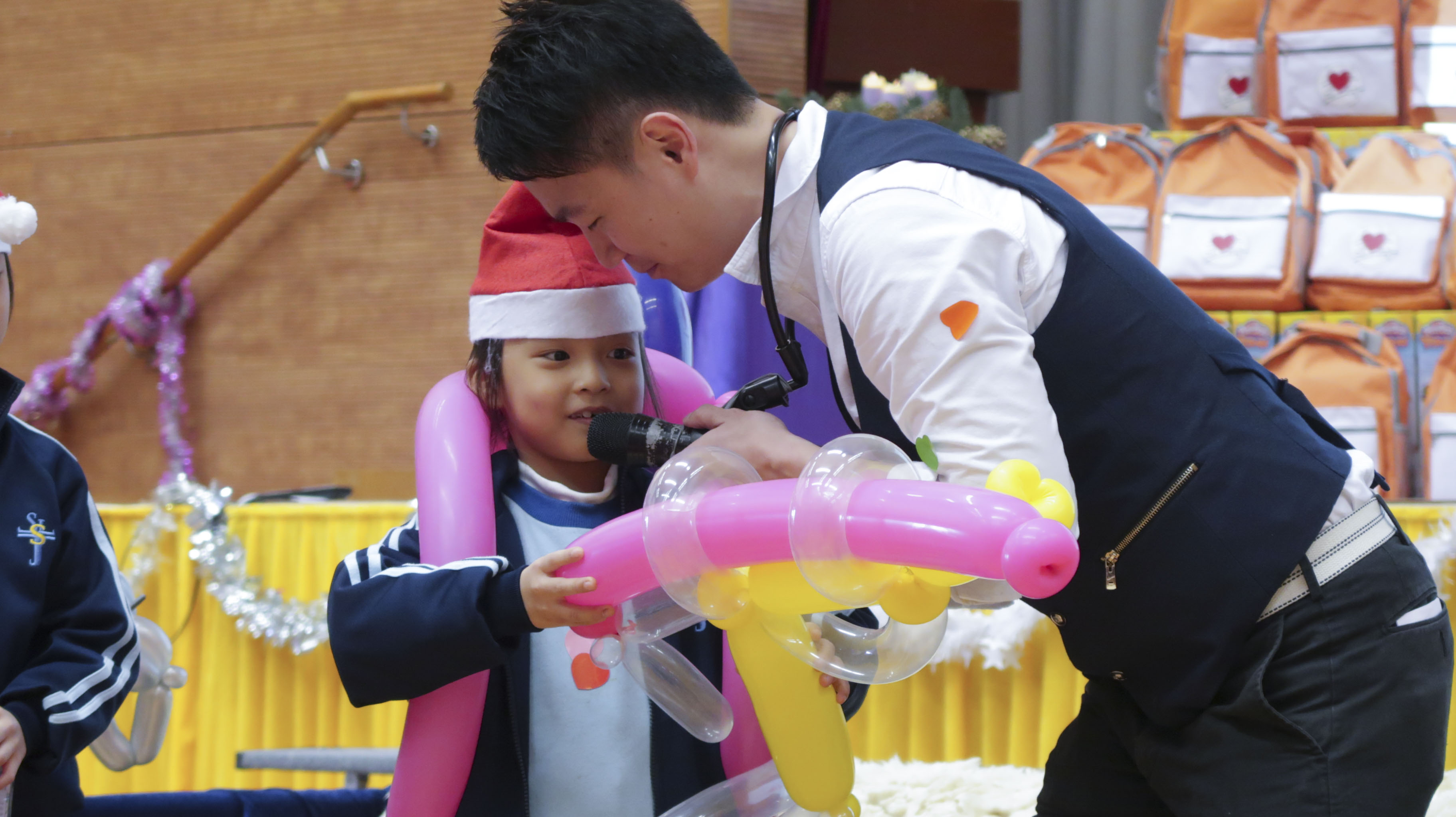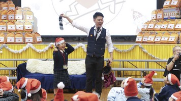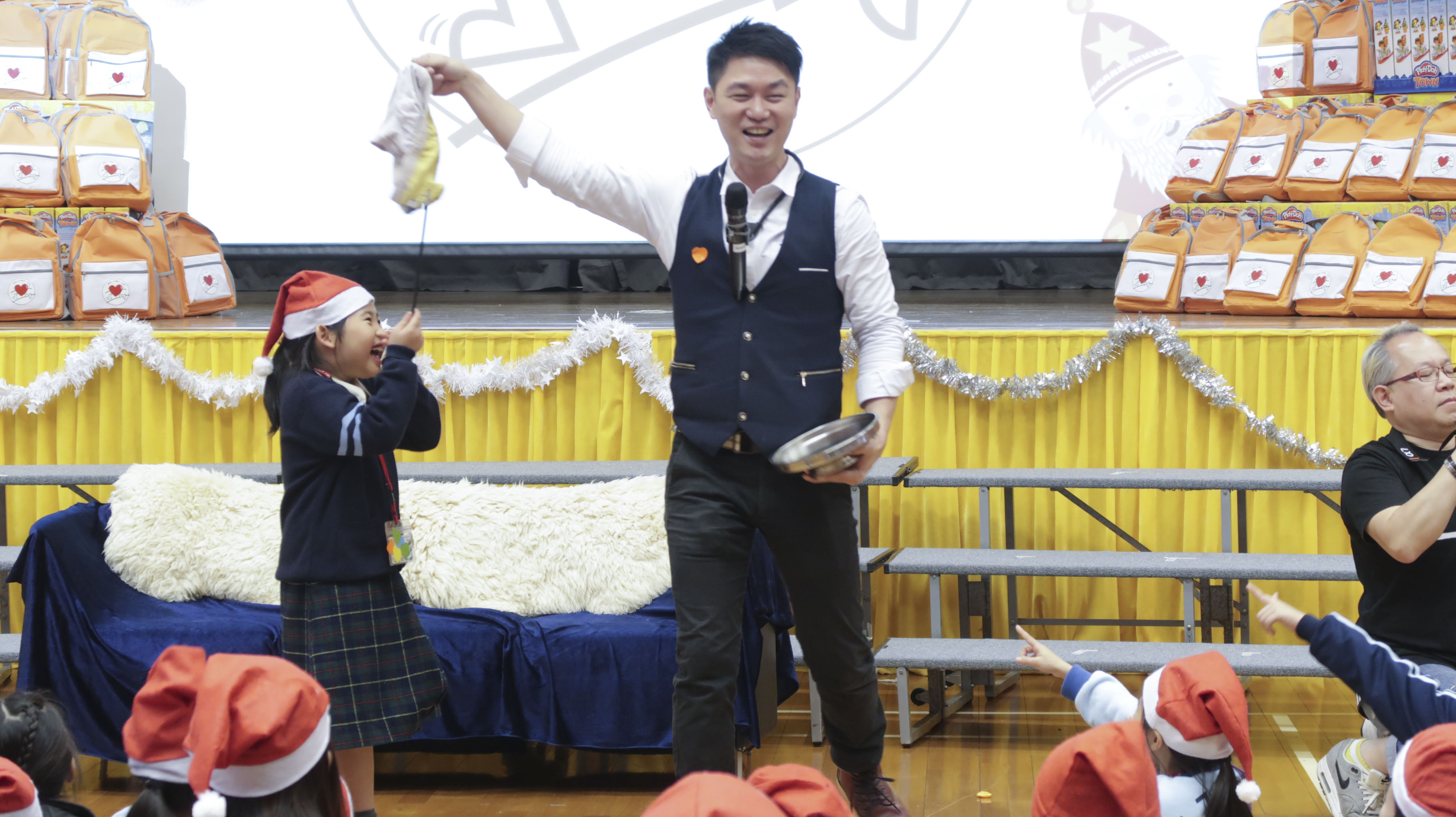 在活動期間,魔術師為小朋友表演了一場出神入化的魔術表演,大家都嘆為觀止。魔術表演後,大家期待的聖誕老人來了,他是由芬蘭遠道而來的,聖誕老人給我們講了一個關於愛的故事,教導同學心懷希望,就能實踐夢想。更一同玩集體遊戲,並收到很多豐富的禮物。參與的同學,各人都樂在其中。