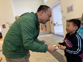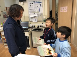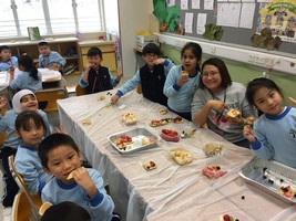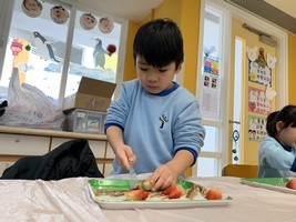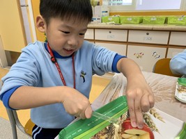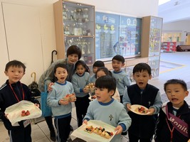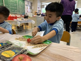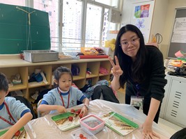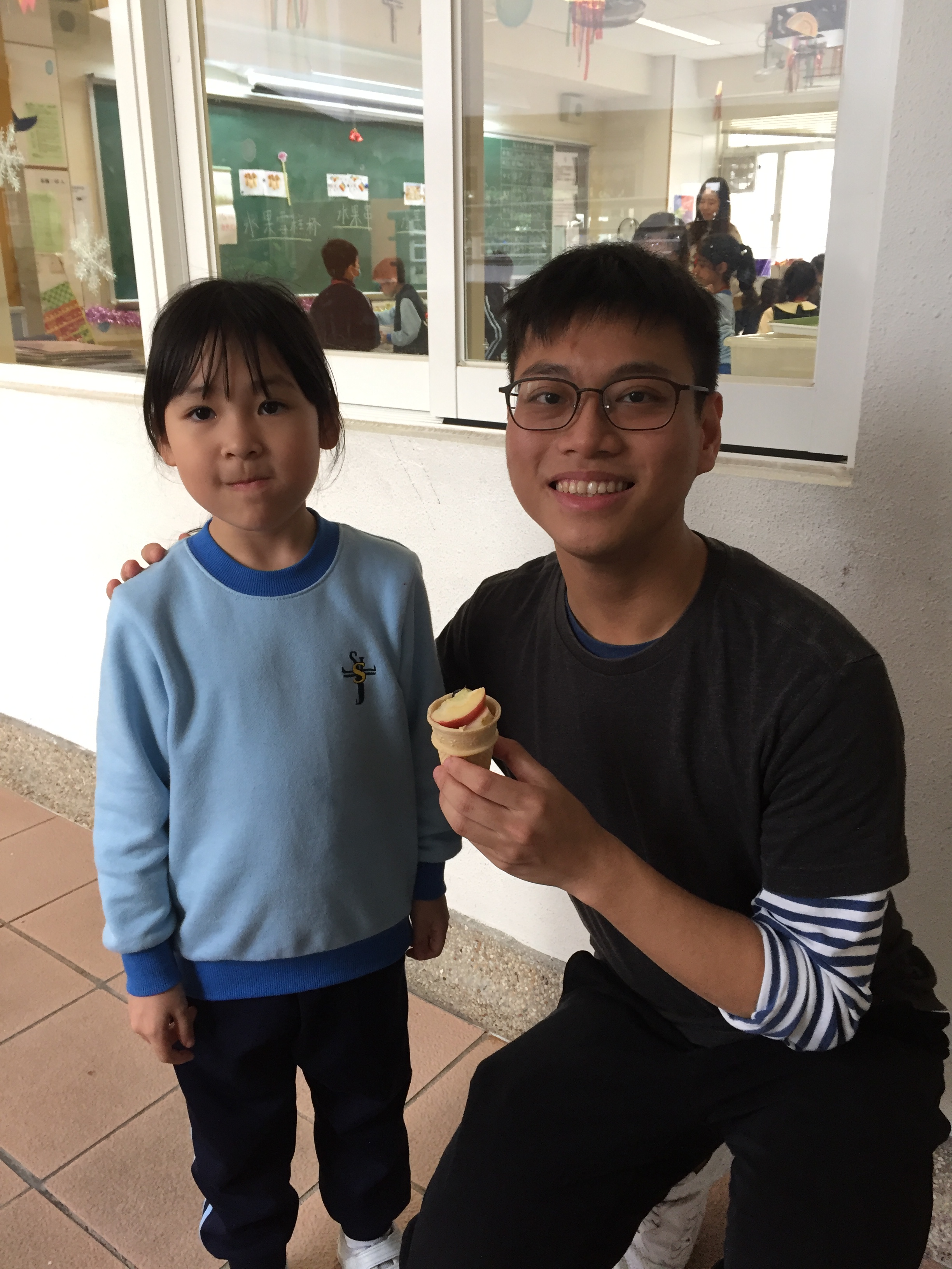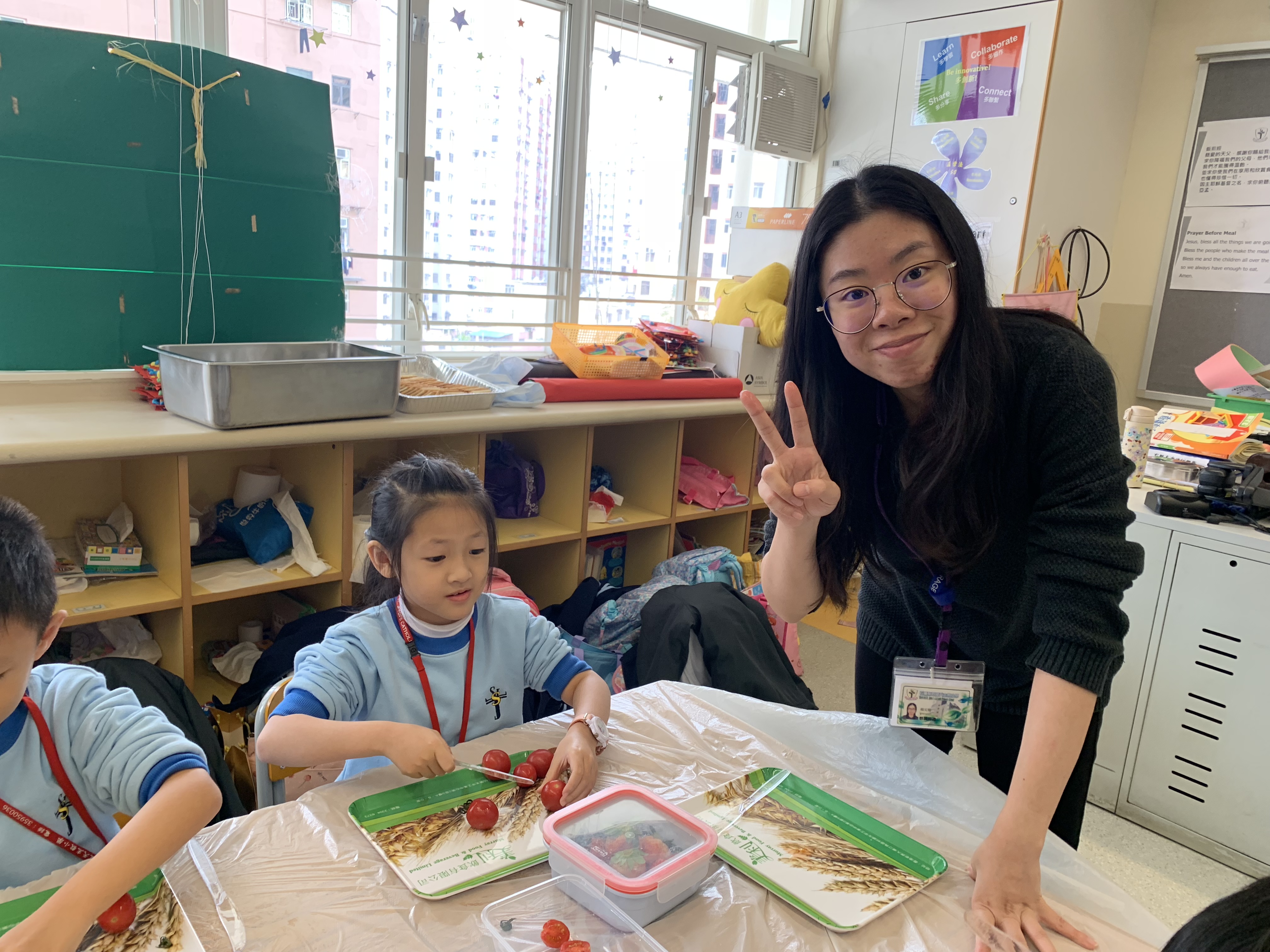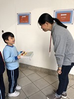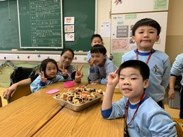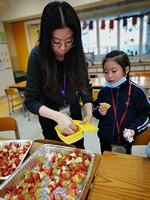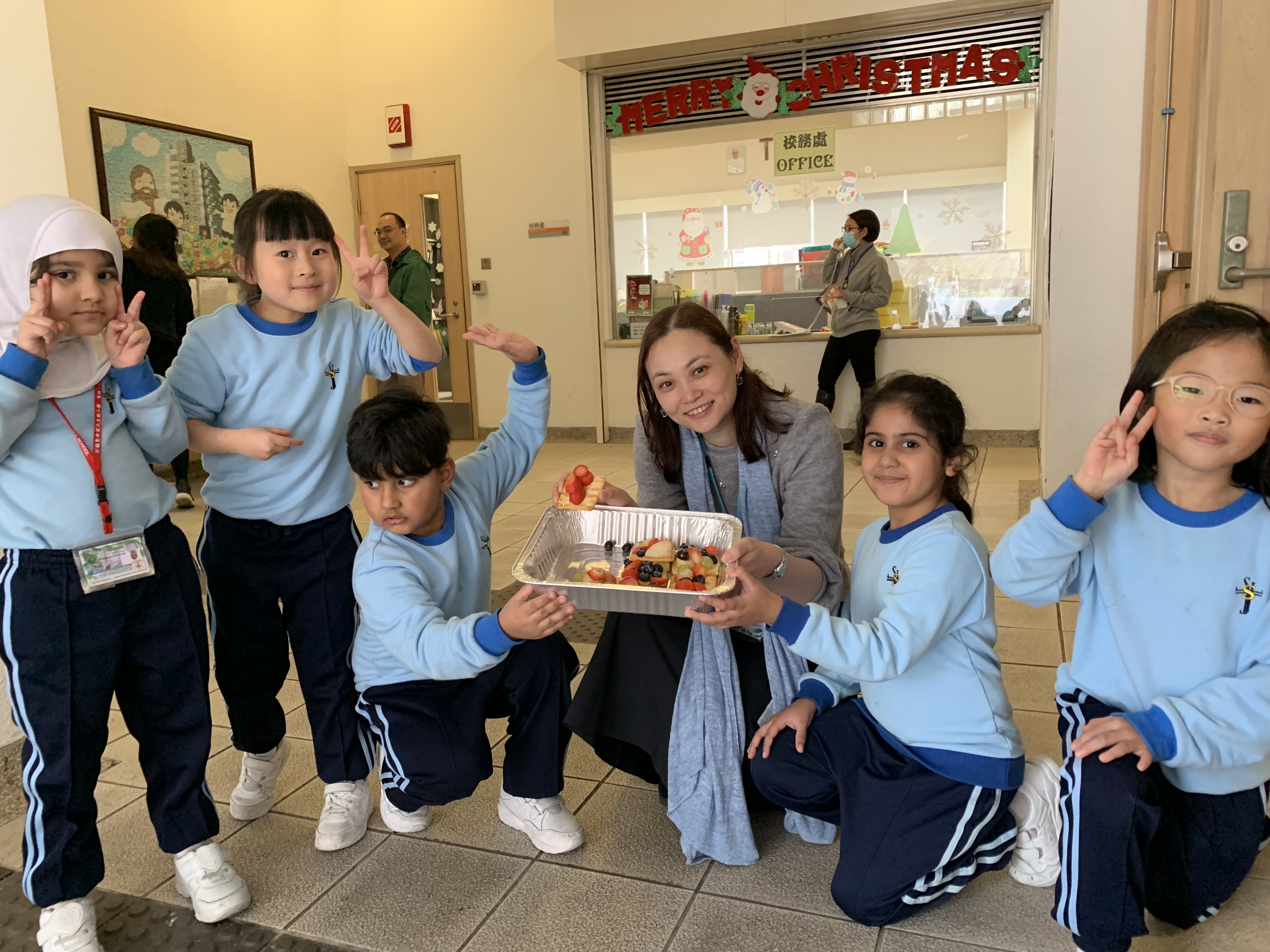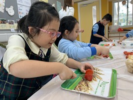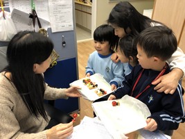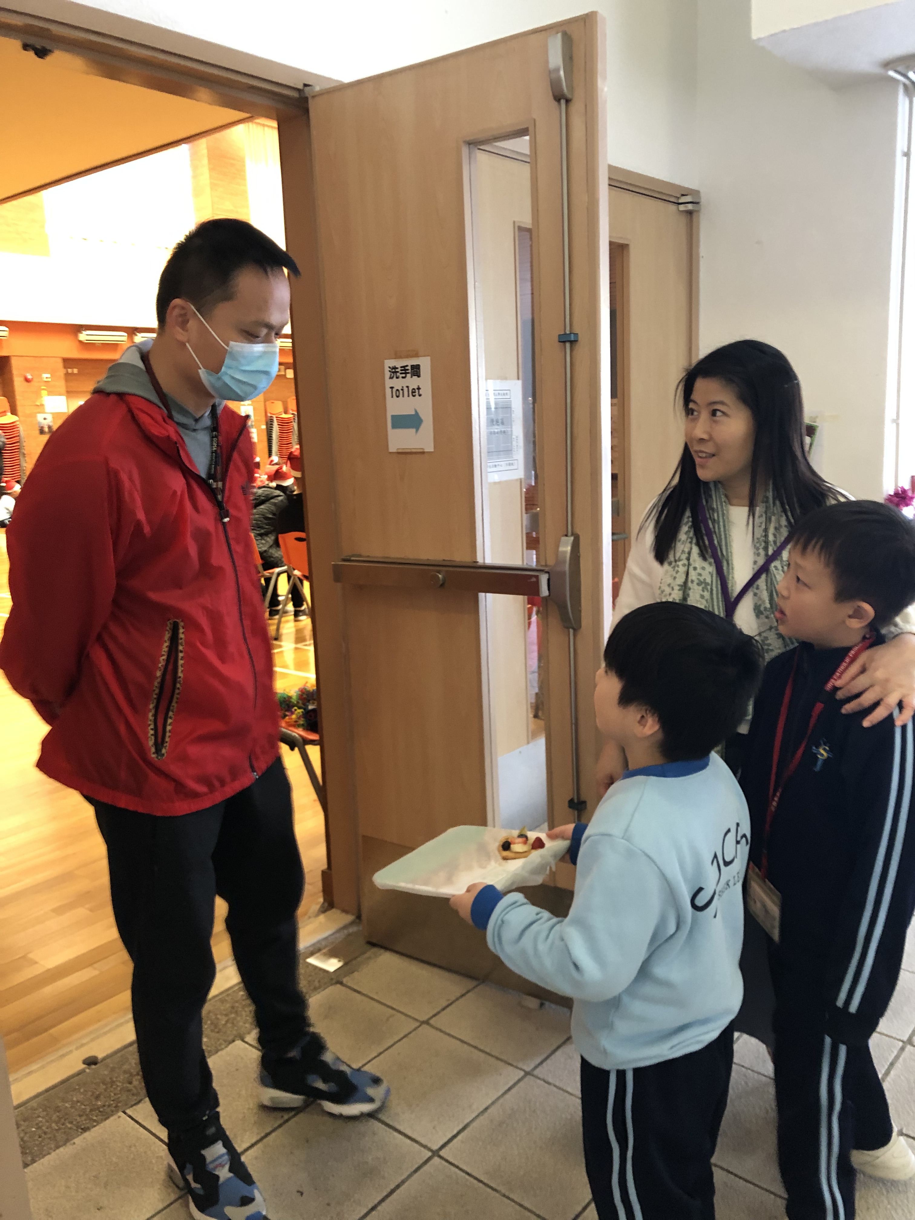 為感謝照顧他們的學校成員,小一學生帶備了水果,一起製作健康水果小食。很多小朋友都是第一次操刀,雖然開始時有點手忙腳亂,但通力合作之下終於完成精美的健康小食,送給多月來照顧大家的學校成員,一起分享努力的成果!