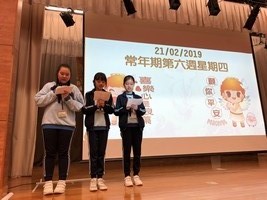 二月十九日至二十一日的普通話周,主題為「粵普對照考考你」。當天的早會用普通話祈禱,午休時禮堂也有活動讓學生參加。學生可以透過一連串遊戲增加對粵普不同用字的認識,包括事物名稱和量詞的運用。