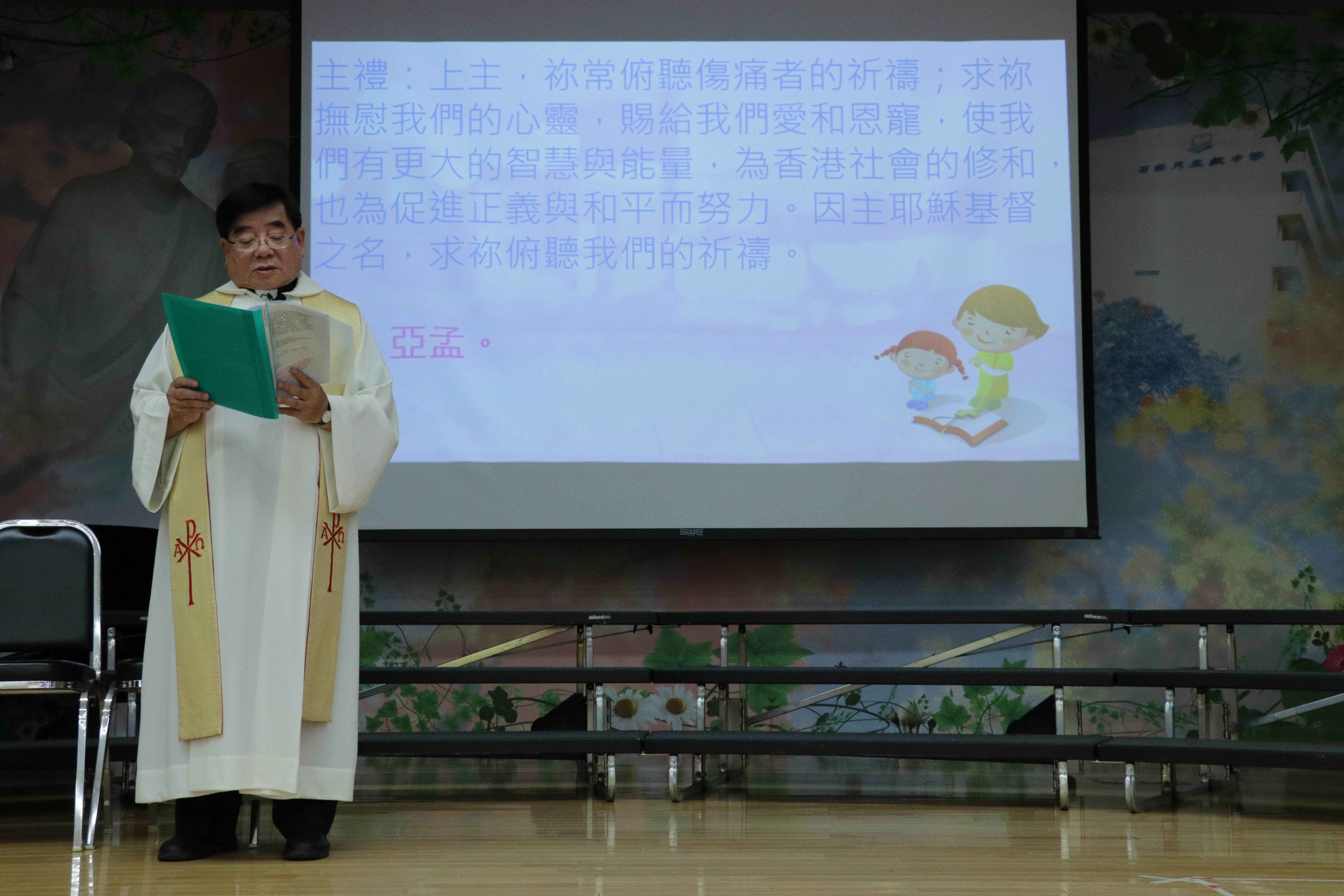 當天我們邀請了劉德光神父主持祈禱禮。在祈禱禮中選讀了瑪竇福音第五章1-12節,神父首先以互動方式提問同學們什麼是福?劉神父教導我們,在福音中,耶穌說在世界上擁有很多東西,並不是最有福,當我們離開世界時,這些東西是帶不走的,而耶穌給我們的真福是永遠都不會消逝。正因為這種福氣,會帶我們一起上天堂。劉神父亦為各人祝福;最後,蕭茵校長致送感謝卡分別給劉神父和石籬天主教中學。