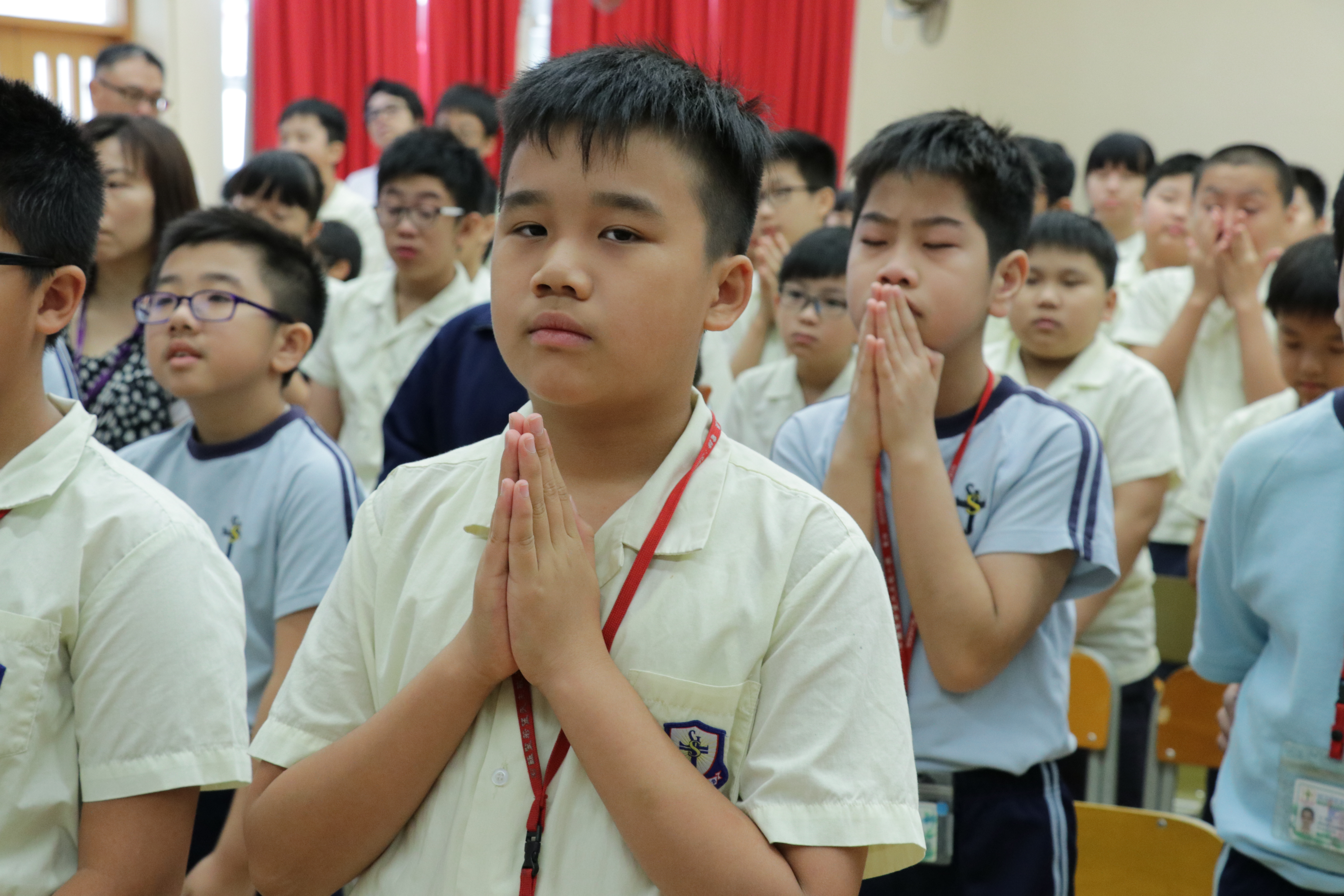 本校於九月十三日承蒙石籬天主教中學慷慨借出禮堂,舉行了開學求恩祈禱禮暨風紀就職禮及敬師日。