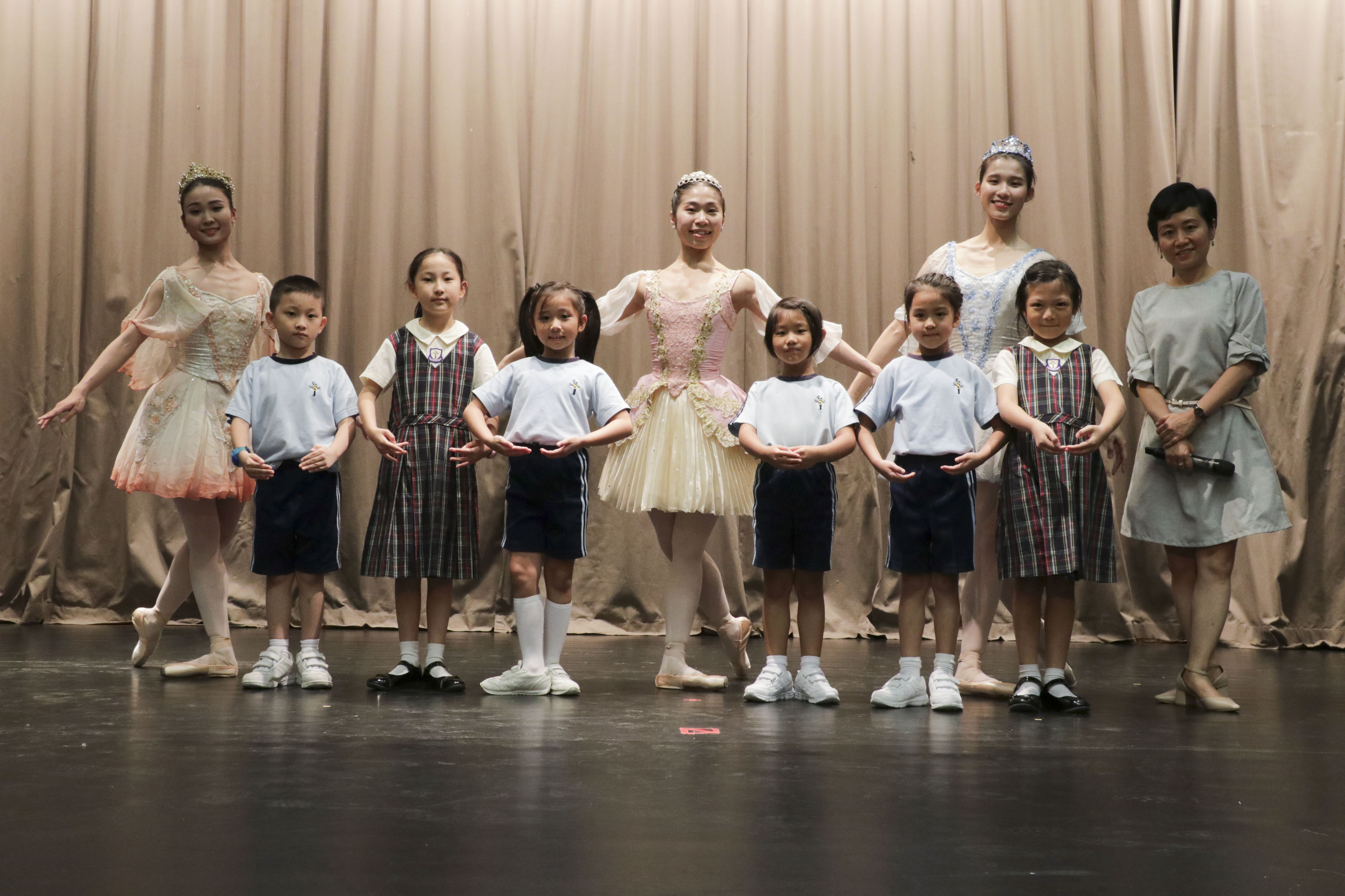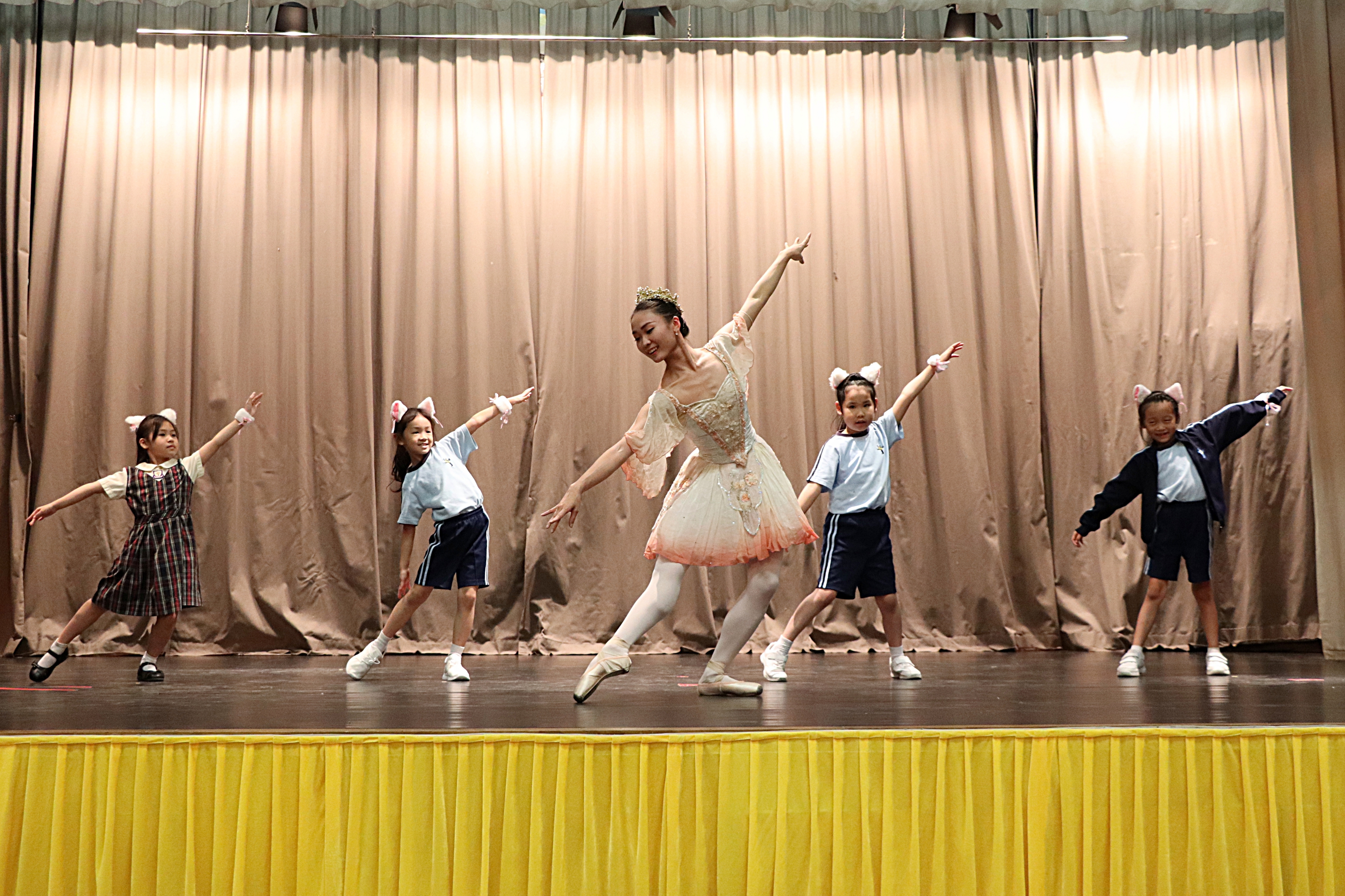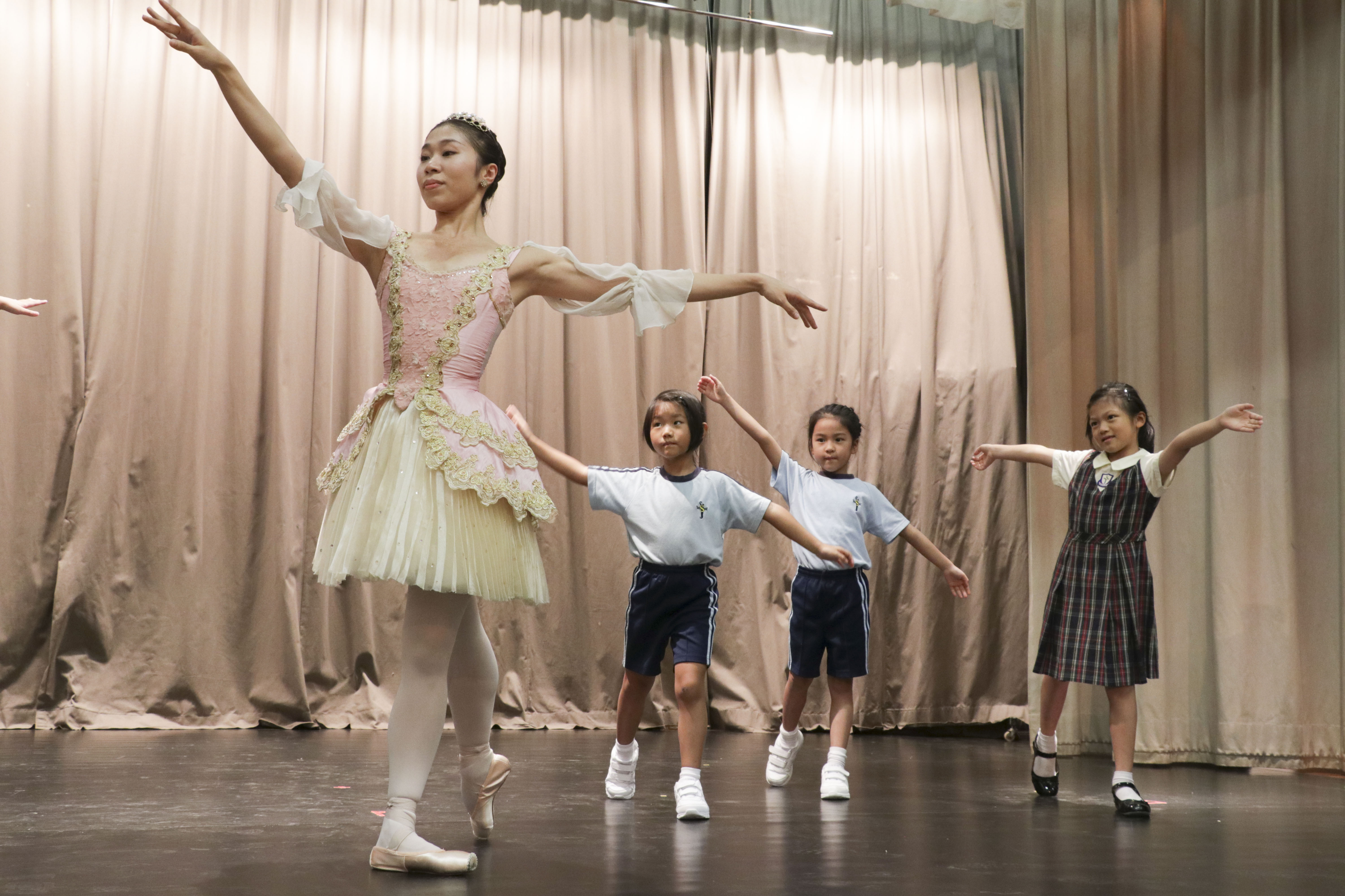 本校今年繼續參加由香港芭蕾舞團和康文署主辦的「創意芭蕾實踐計劃」。課程包括芭蕾舞基礎訓練、幕後探索及製作工作坊、舞台技術導賞及結業演出暨分享交流會。香港芭蕾舞團於上月在本校完成了一場學校巡禮,由3位現任香港芭蕾舞團團員穿上漂亮的服裝加上優美的舞姿作示範表演,我校學生更被邀請到台上試跳幾段舞,大家都很投入呢!