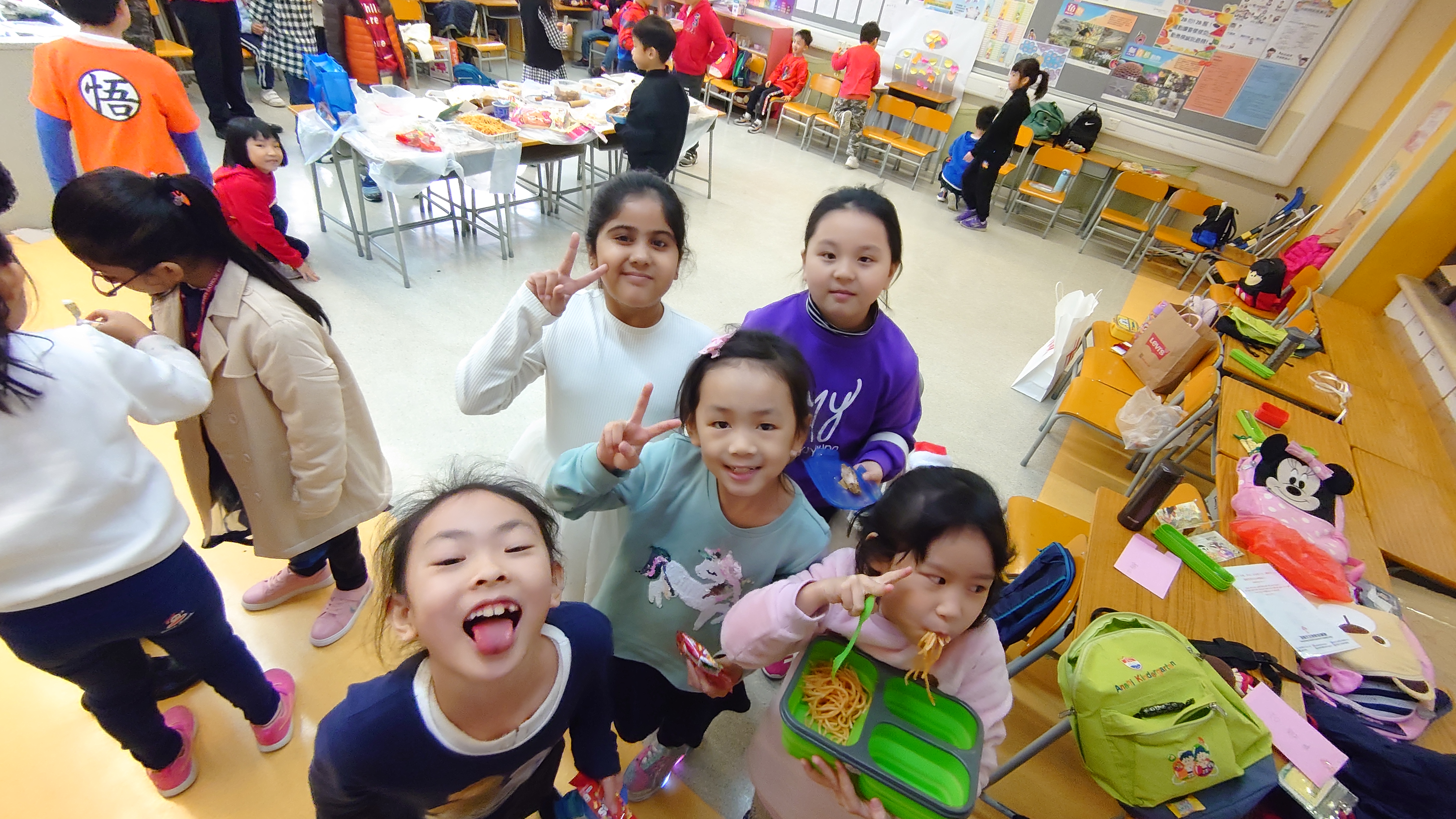 在禮堂的慶祝活動完結後,同學們分班返回課室進行聯歡會; 師生們一邊分享美味的小食,一邊玩刺激的小遊戲, 一邊談天説地。