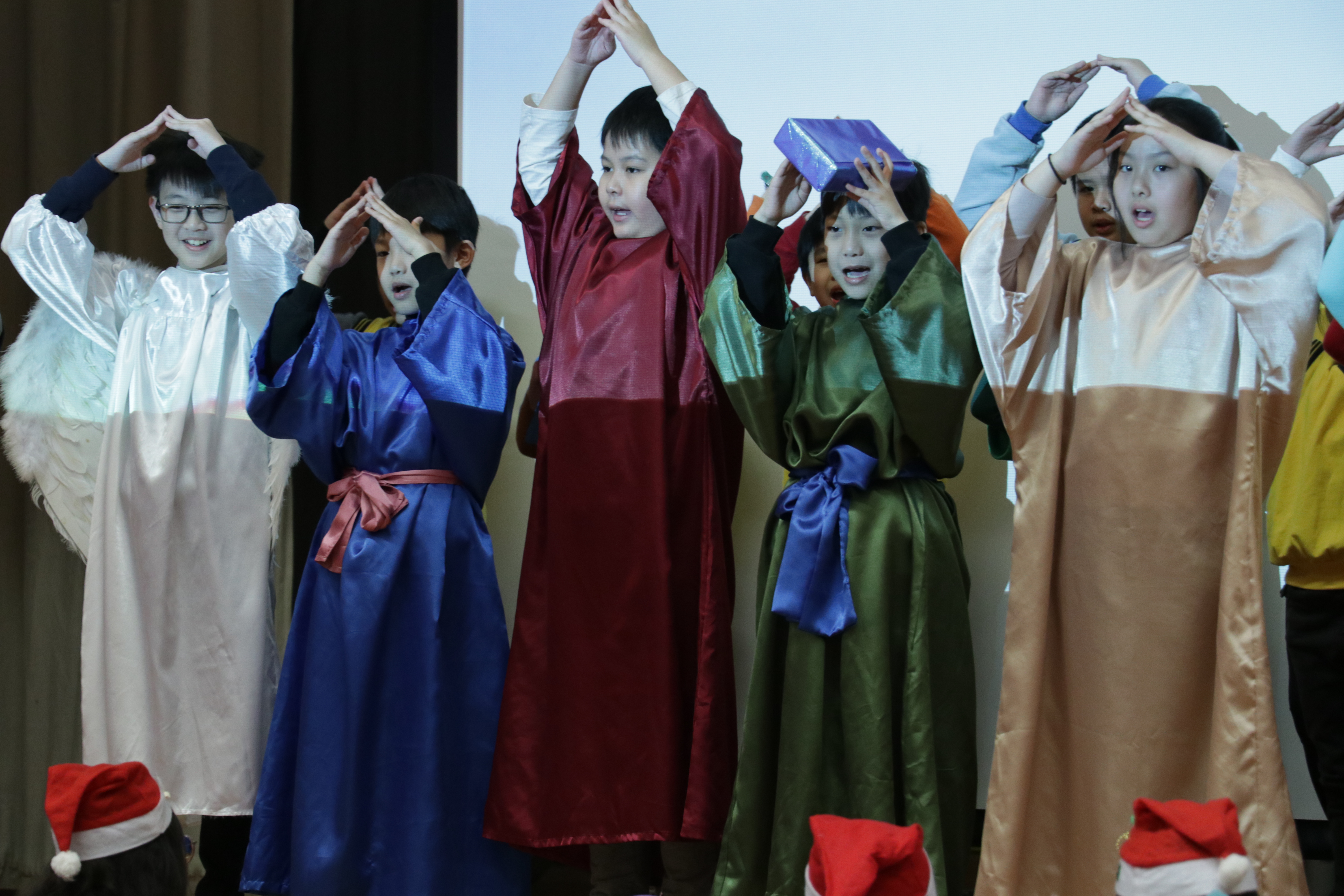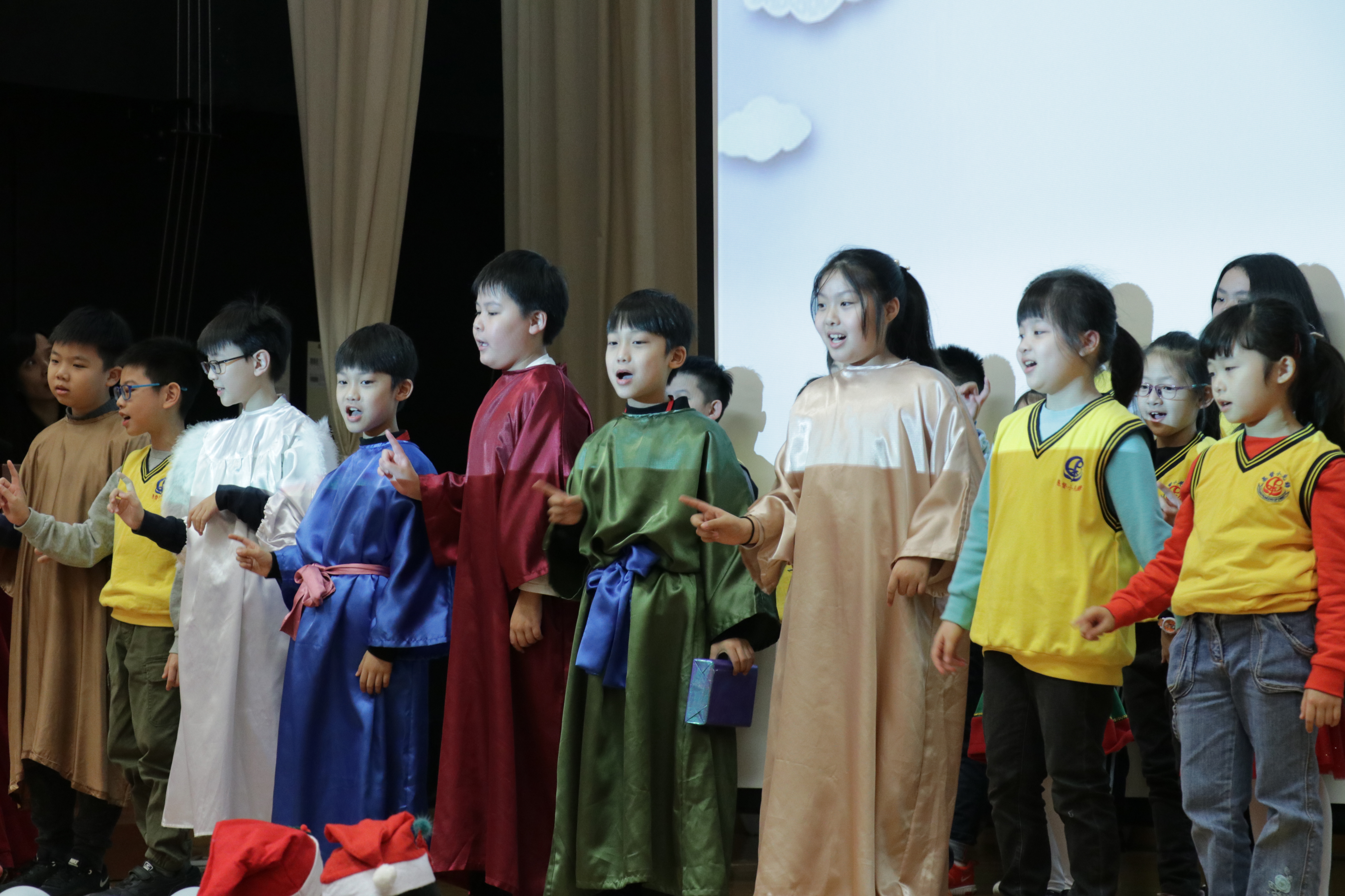 首先, 大家齊集到禮堂, 一同參與聖誕頌禱,專心地聆聽宋啟文神父分享的聖言,再觀賞別具意義而又精彩的聖境劇。