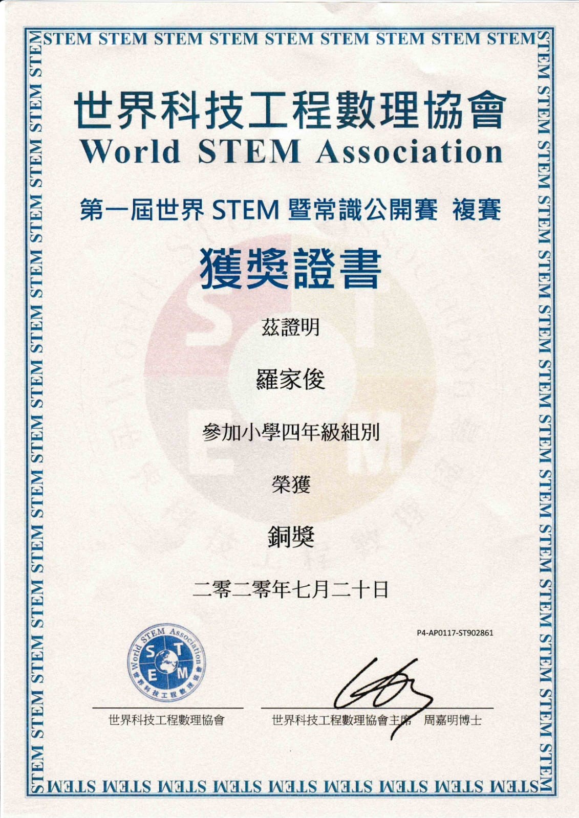 我校學生參加了第一屆世界 STEM 暨常識公開初賽及複賽,喜獲以下佳績。
