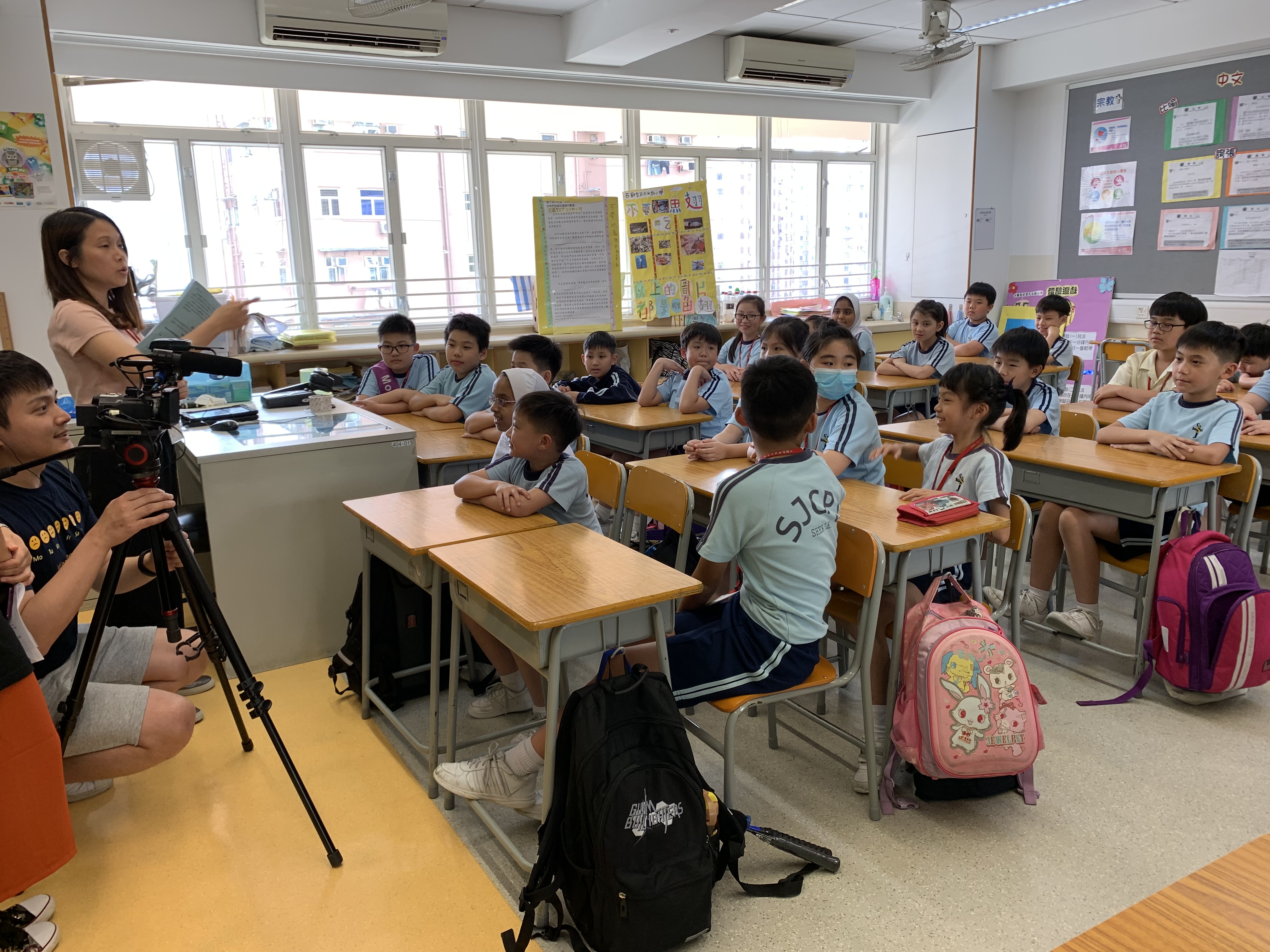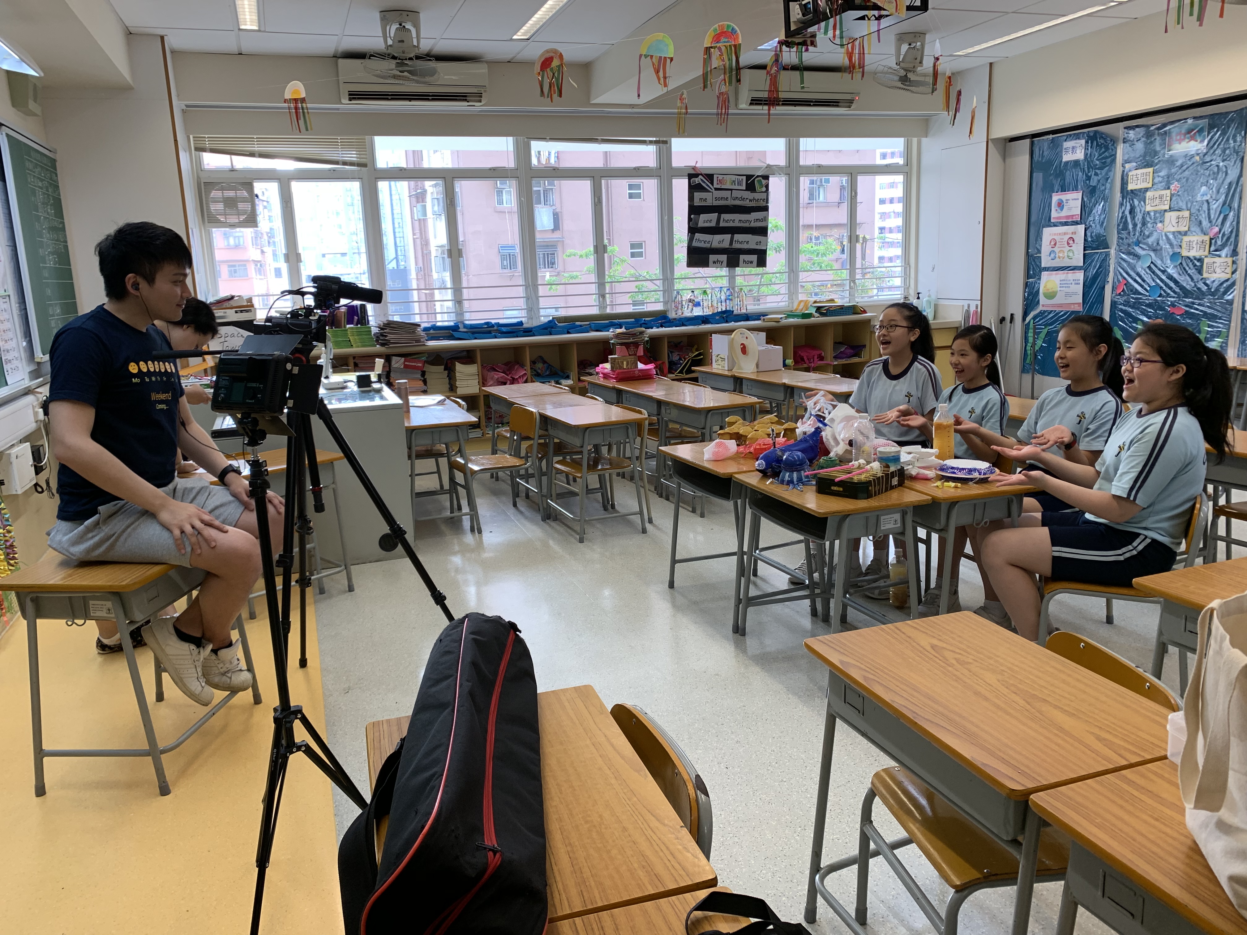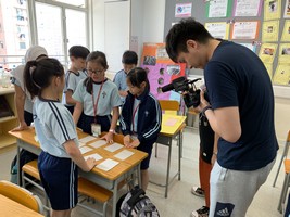 4月下旬,港台節目《環保雙長大挑戰》節目攝製隊到學校拍攝,內容包括: 一:四年級學生透過製作攤位遊戲和展板,宣傳動物權益,於校內及社區作推廣。 二:五、六年級學生分享曾在課堂中製作的環保樂器、酵素、塑膠藝術品等。 內容(一)已製造短片,歡迎同學到以下網址觀看:http://bit.ly/2QhKzmt