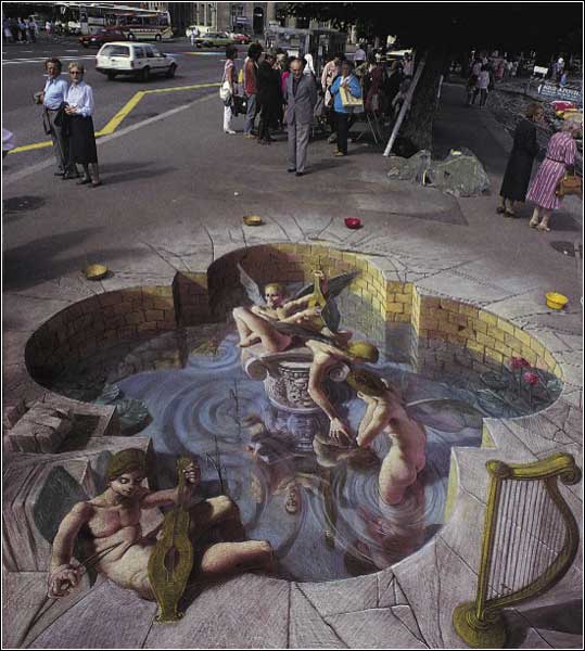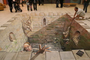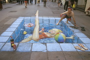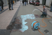 - 英國著名藝術家Julian Beever以他以假亂真的街頭粉筆立體繪畫聞名於藝術界,他經常游走於英國,法國,德國,美國,澳大利亞比利時等國家,用粉筆為當地的街頭添一道新穎獨特的風景。