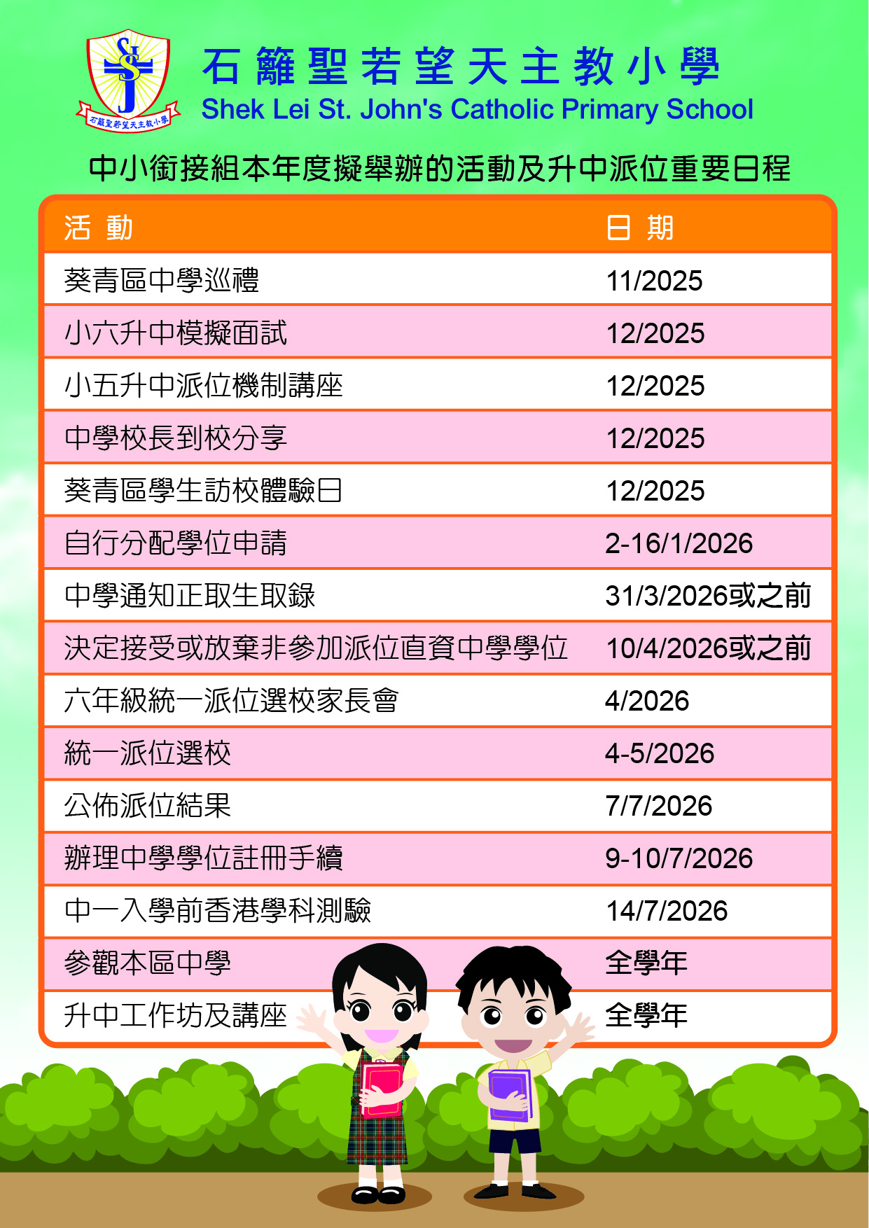 -> 入學及升中資訊 -> 中學學位分配 -> 中小銜接組舉辦的活動