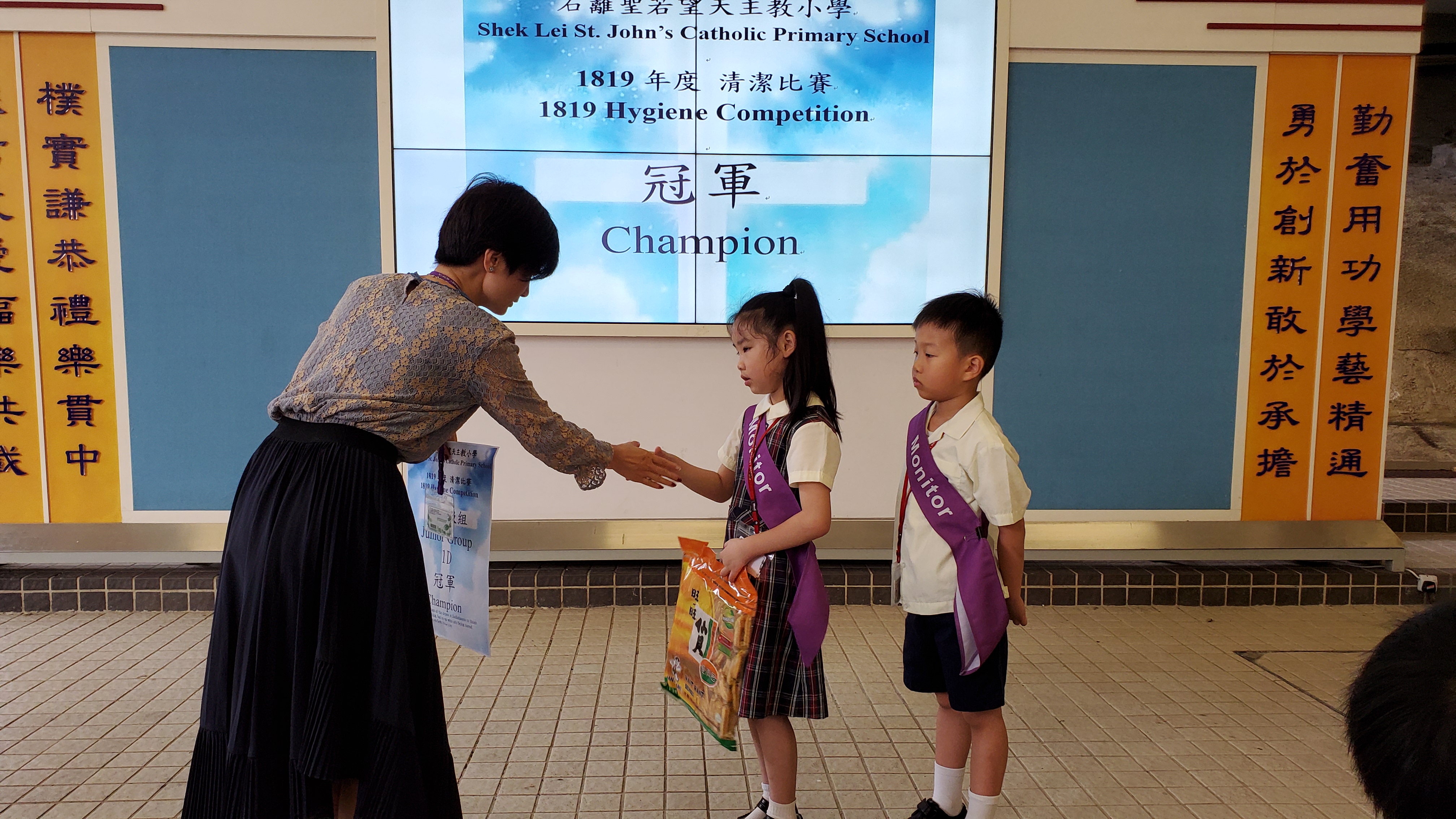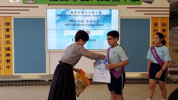 5月底舉行班際清潔比賽,為期兩星期。評分準則包括課室及書桌整潔等。評分者包括科任、當值老師及工友。小一至小三及小四至小六分為兩組,各組設冠軍乙名。 冠軍班別: 低年級組:1D;高年級組: 5B 。